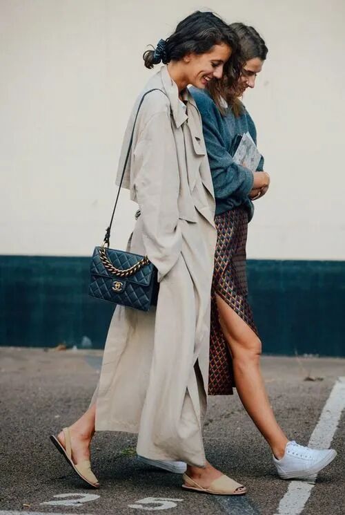 风衣混搭绸缎裙,则给人刚柔并济的街拍魅力,轻盈而灵动也别具一番韵味!