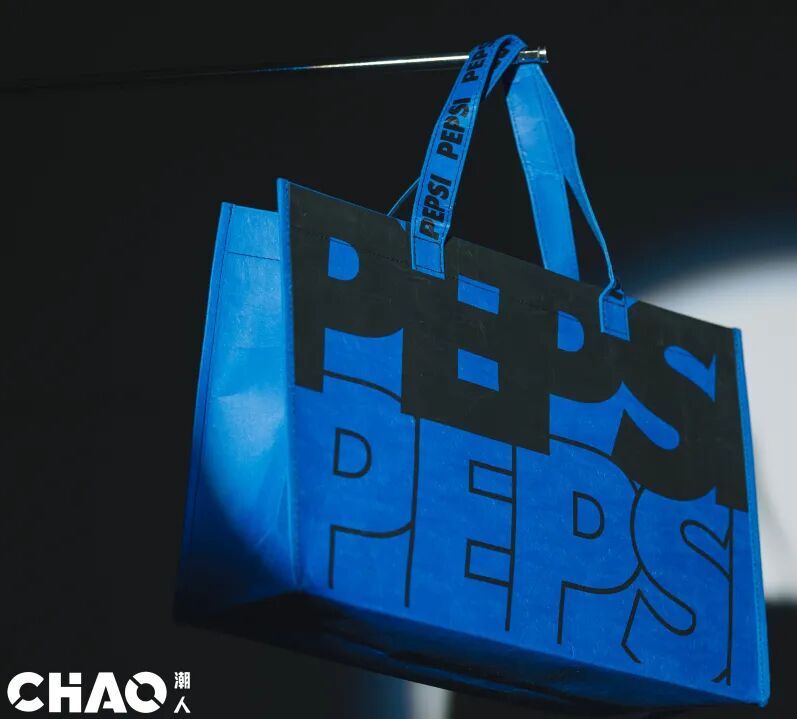 最后再给大家配备一个百事托特包,耐操的用料质地,精细的缝合边,包面没有过于繁复的装饰,仅点缀了PEPSI字样的放大变形体,潮酷感就来了!