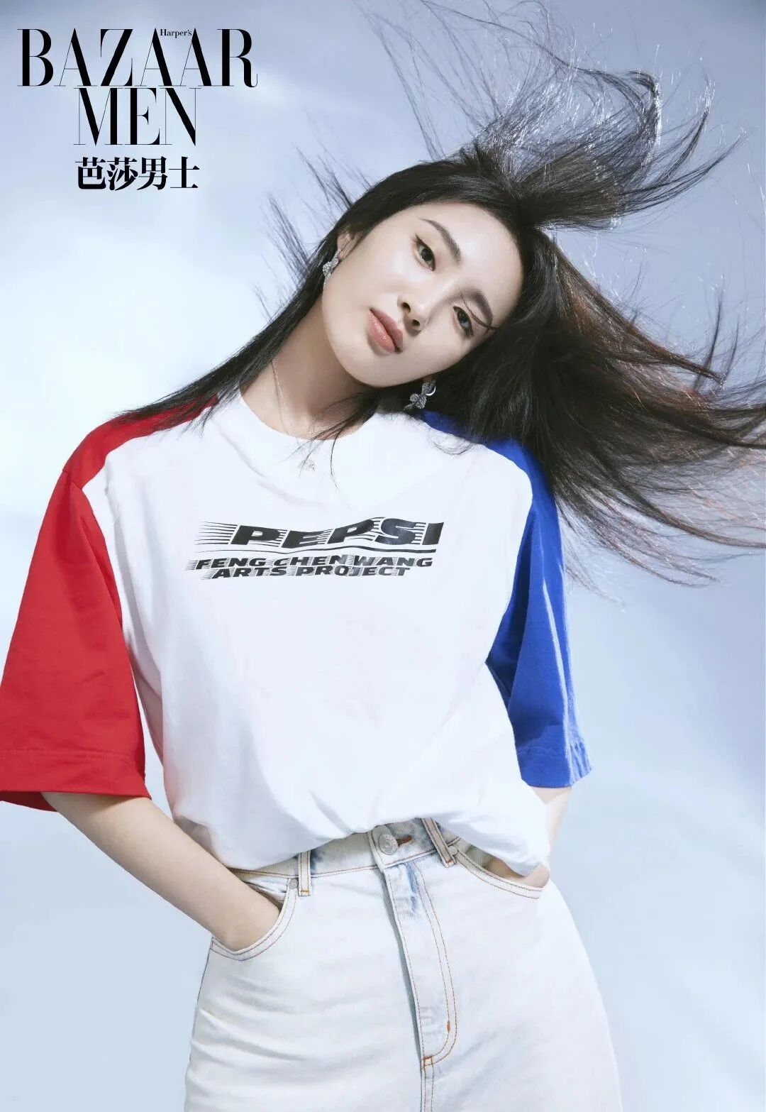 另一款出品则是百事 x Feng Chen Wang Arts Project 联名TEE,两边的袖子采用了红蓝拼接,揉合了立体剪裁的干净利落,不受性别限制多元风格,女生穿也自带酷感,来品一品王紫璇的完美示范。