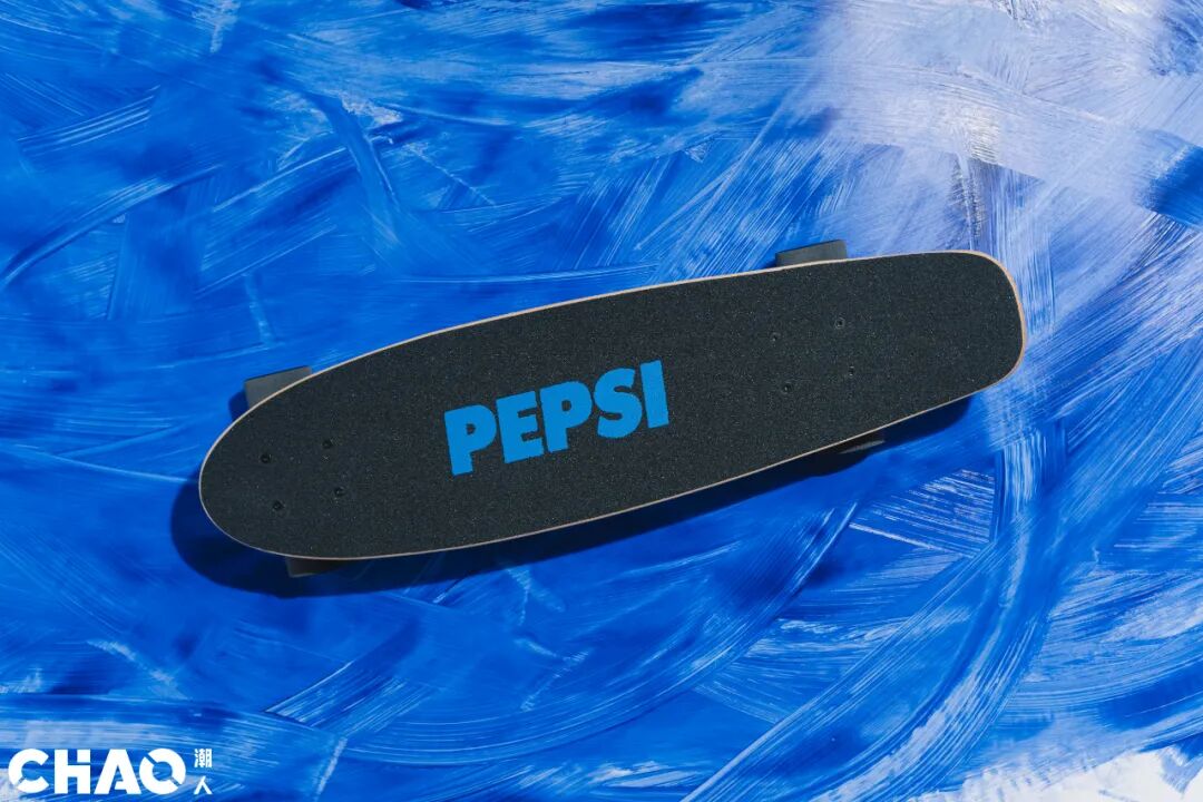 有衣服有鞋子,街头青年热爱的滑板也该安排上了。活动推出的百事街头滑板,简洁的板面上镌刻了“百事蓝”的PEPSI字样,板底则再次将百事logo进行有机排列,平铺在“百事蓝”的底色上。