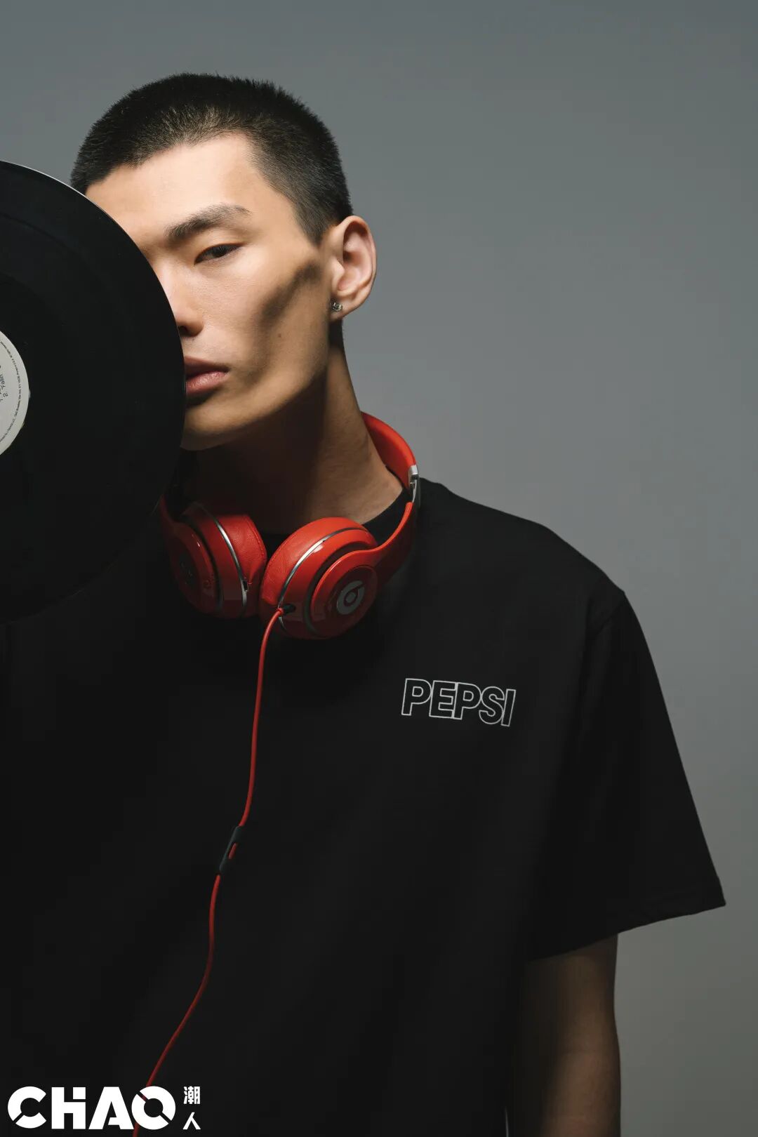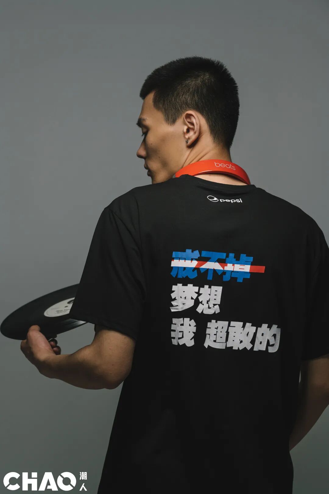 方正的短袖TEE版型,全黑的配色,正面胸前是镂空的PEPSI字样,背后则是“我超敢”的态度语录。