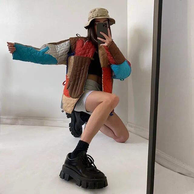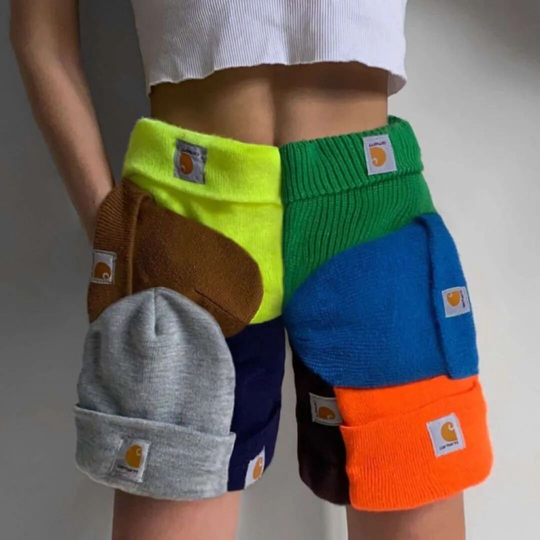 用Carhartt针织帽拼接成的短裤,锅炉手套缝起来的冲锋外套......