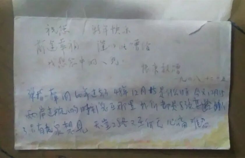 战争亲历者的讲述琐碎而感性,是不成系统的记忆和情绪,但恰恰是这样的讲述,历史才是活的。有位美国历史学家认为,历史是「说过的和做过的事情的记忆」,我觉得这个定义非常恰当。人生不等于大事件年表,记忆是由不连贯的场景、细节和感觉构成的,这些记忆碎片定义了一个人的生命。侠姐给我看过一张照片,照片拍的是一张边角发黄的贺卡,贺卡上写着几句老派的祝语:祝您新年快乐,前途幸福。谨以此赠给我想念中的人儿!振康敬赠,一九四八·十二·十五
