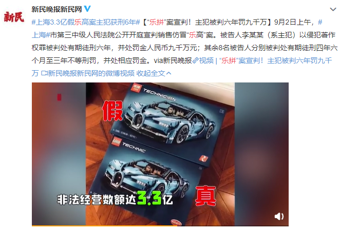 前天2020年9月2日,在中国玩具史上应该算是一个需要被记住的日子 —— 上海第三中级法院宣判,因为销售仿冒乐高的产品达数亿元,曾经在中国小有名气的“乐拼”公司多名负责人被判刑,并处以了最高9000万元的罚金。