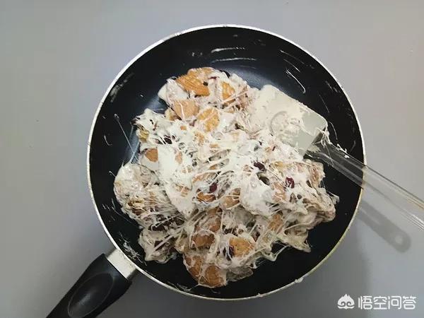 1,可以用平底锅或者电饭煲来做牛扎饼,在锅中倒入黄油,加热融化它风靡朋友圈的网红雪花酥。