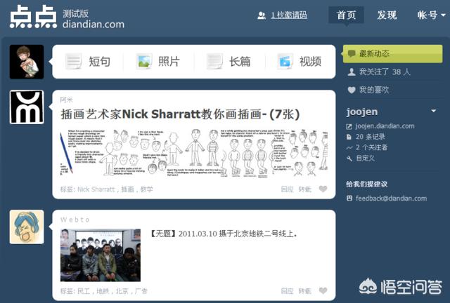 点点网是Tumblr最有名气的学徒之一,无论是轻博客的形式还是整个页面设计,点点网都在力图还原那股“原汁原味”名人朋友圈网页。