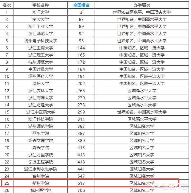 在国内的话,排在大概600多名的样子,在省内也不算出众排在第25位左右,落后于丽水学院,嘉兴学院和台州学院等同类院校衢州学院新生群。