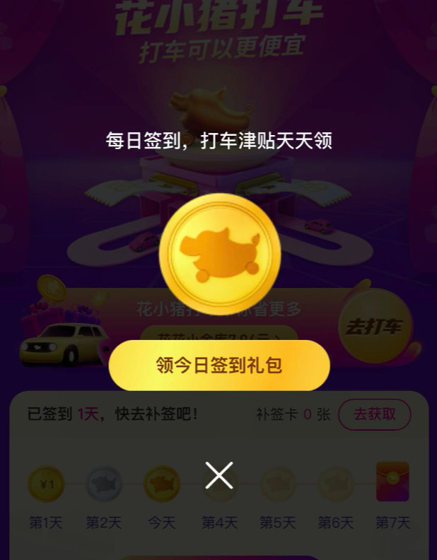 花小猪为了提高留存,还做了个打卡活动,用户每天签到都能领津贴,但是没说能领多少。