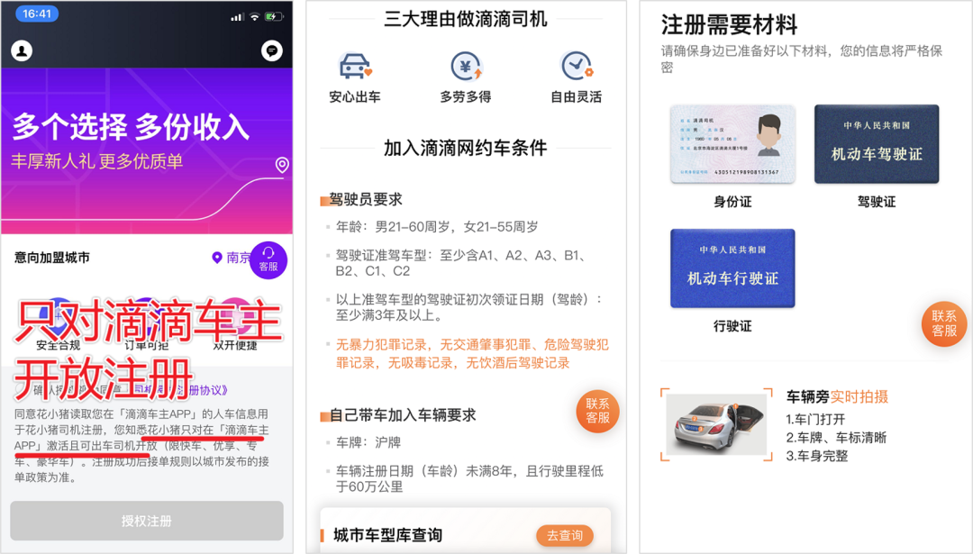 我试了下注册花小猪司机,发现系统要求先要注册成为滴滴 App 的司机。这相当于变相提高了司机数量。