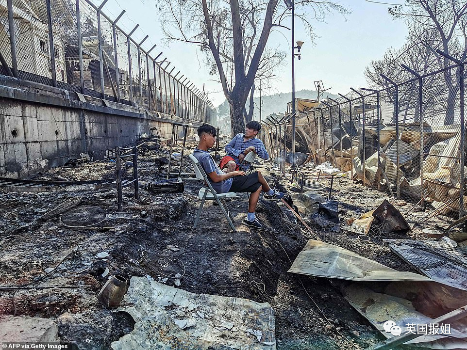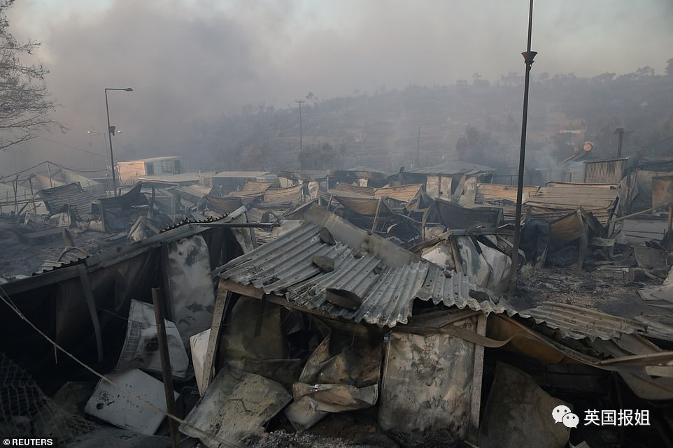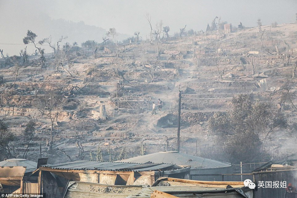 莱斯博斯岛,欧洲最大的难民营,1.3万难民的聚居地,两天之内爆发三场大火,已被夷为平地。