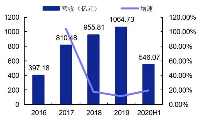 ▲2016-2020H1 TMT 公司营收及同比增长率