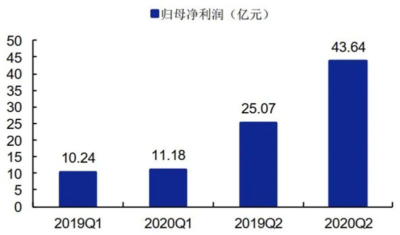 将上半年分成两个季度来看,一季度由于疫情影响,整体增速较慢,71家公司整体营收229.83亿元,同比增长 14.55%;归母净利润 11.18 亿元,同比增长 9.15%。二季度由于复工复产,整体增速较快,71 家公司整体实现营收 313.09 亿元,同比增长 23.45%;归母净利润 43.64亿元,同比增长 74.06%。这一高额增长主要也是由于科创板龙头公司的带动。
