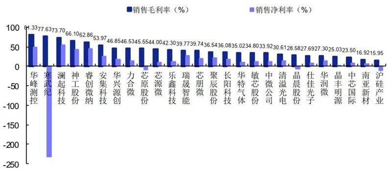 ▲2020H1 半导体行业 26 家公司的毛利率和销售净利率情况