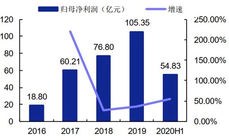 ▲2016-2020H1 TMT 公司归母净利及同比增长率