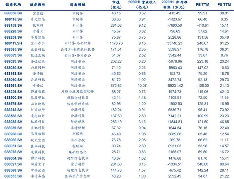科创板 TMT 板块中的计算机产业链企业覆盖了云计算、网络安全、金融科技、企业信息化、音视频等领域。
