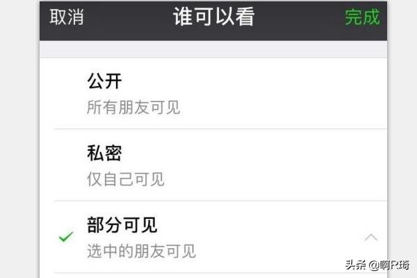 3朋友圈设置部分人可见、接下来,我们可以点击谁可以看,在部分可见里面选择,如果没有,那就点击从通讯录选择。