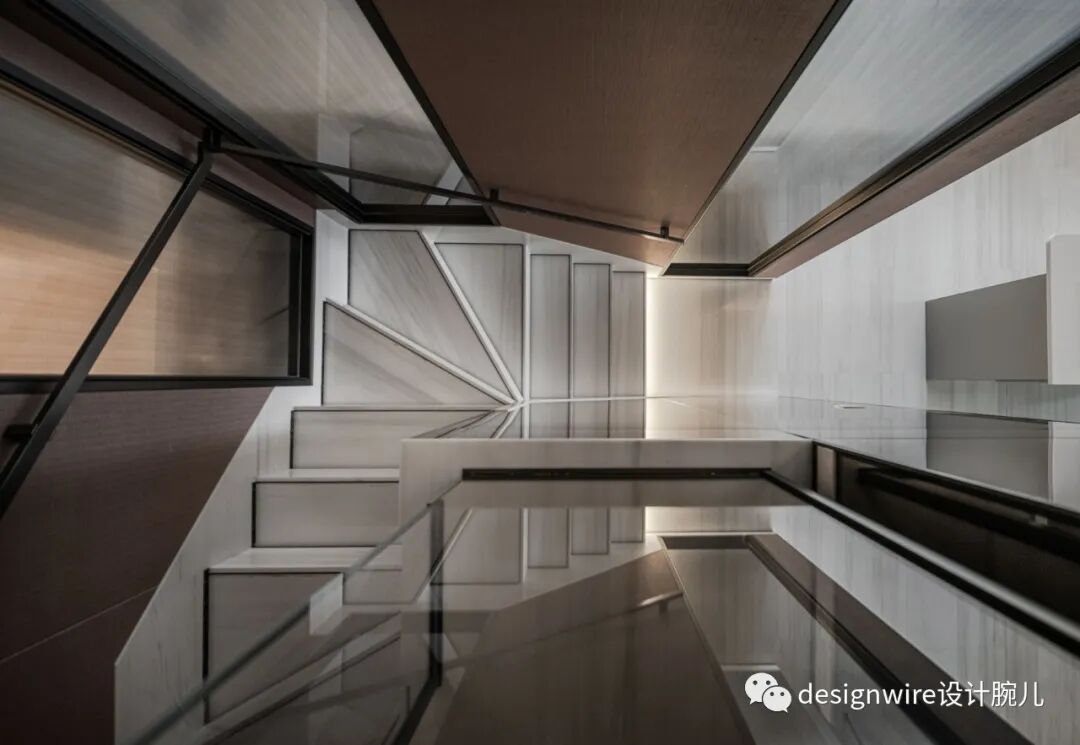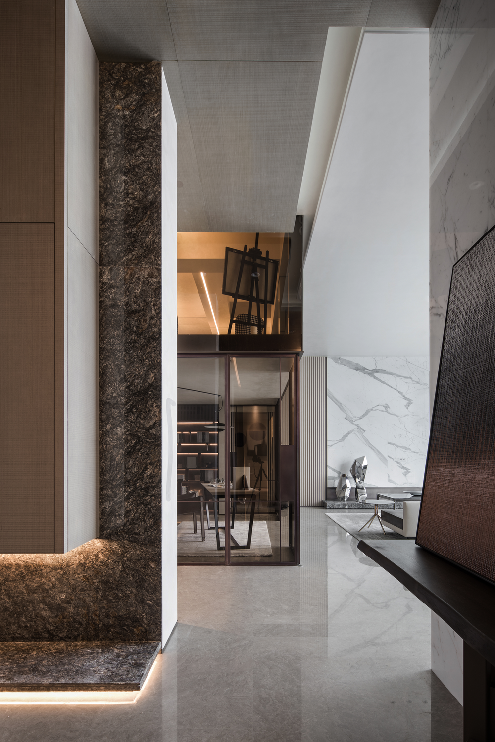 观廊道,仍见一种东方主义的精神写意,皮质、石材、纺织,多重肌理映衬搭配,演出灵感迸发的空间戏剧。