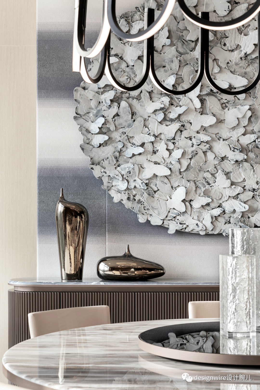 “没有美学就没有生活。”就餐的氛围,因翩飞的蝴蝶装置而凭添几分灵动,庄生晓梦的东方意境与优雅的堆叠肌理,共同演绎浓郁的装饰风情。