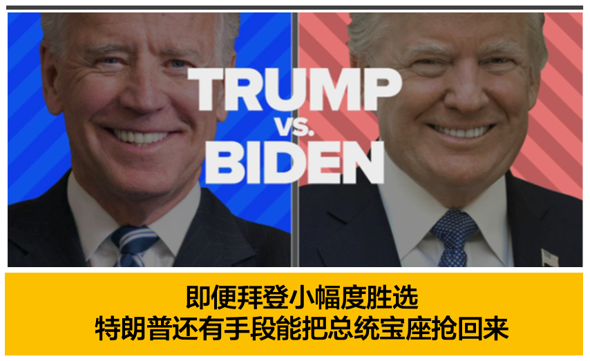 即便是拜登在开票中以小幅度优势胜选,特朗普也能通过一番骚操作把总统宝座抢回来。