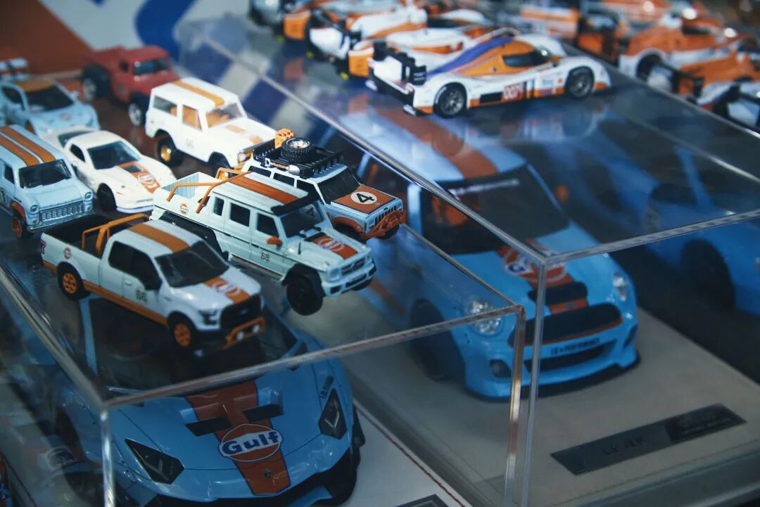 「从我入行开始,我在20年前,就有一些零星的小收藏,或是厂家和品牌赠送的模型,但是从系统的完整性上来看,它们并不算是收藏,因为没有主题,也没有方向。2013或2014年,在我开始做《rap驾道》以后,脑海中可能更多的想去做一些关于文化的东西,所以我想收藏也是一个文化,我想让自己的收藏变得更系统,所以我就将目光锁定在Gulf(海湾石油),因为我很喜欢颜色的涂装,在楼下柜子里的橙色和蓝色的,我的第一台收藏,是我出生那年的勒芒的冠军车——福特的GT406,从那之后,我就开始真正的收藏汽车模型,包括这些玩具。」