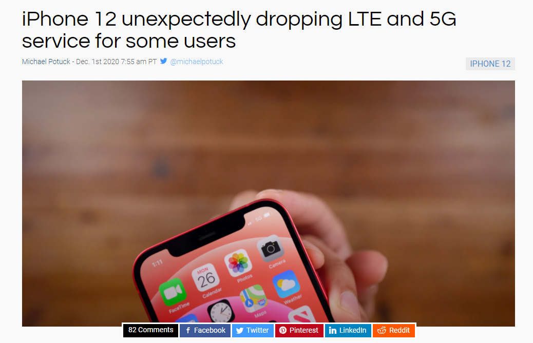 从目前反馈的情况看,iPhone12 系列网络掉线的情况并非个例,虽然目前还不清楚具体细节,但是有人猜测是新机处理信号切换发射塔的过程中出现了问题。