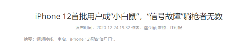 据 IT 时报报道,中国某运营商已经对 iPhone12“信号门”进行专项测试,结果显示,iPhone12 掉线时,同一地点的网络并没有异常。