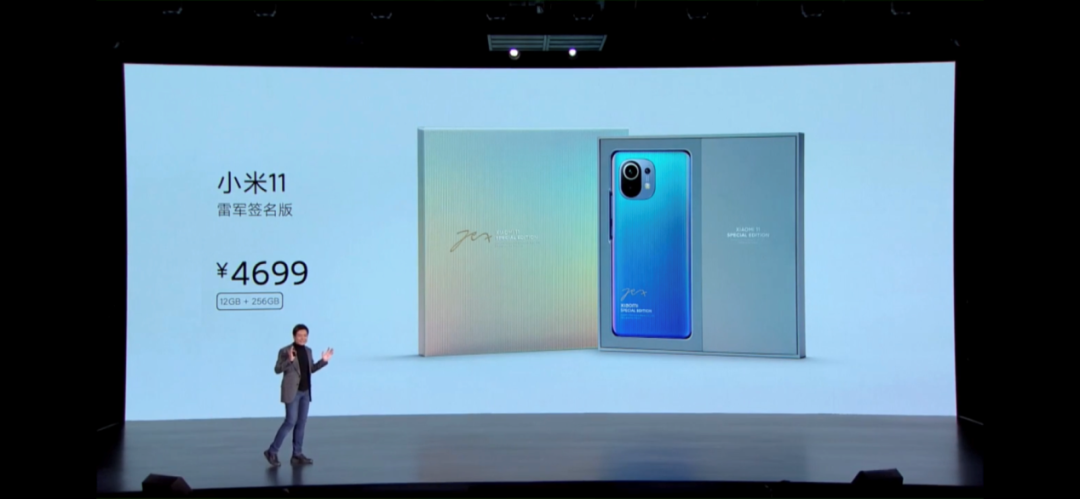 小米还带来了一款小米11雷军签名版,基于小米首创玻璃表面热压纹理工艺,采用定制包装盒,定价不变,12GB+256GB版本4699元。