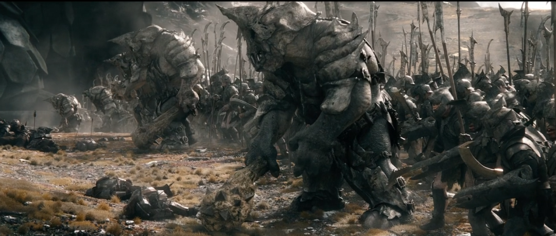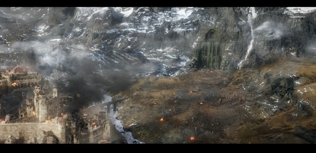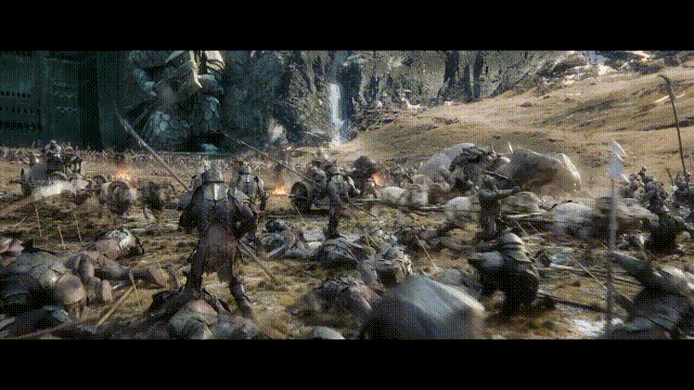 于是,为了让观众能够“看得懂“,导演彼得·杰克逊和摄制组首先做的第一件事,就是简化了战场。原著中,战斗发生在河流谷地的两岸和两边的山脉上,而在电影中,导演PJ则选择将战场完全转移到河流的一岸。这样,首先避免了河流的分割所增加的场景复杂度。