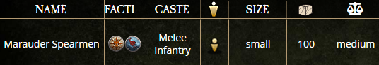 《战锤:全面战争》系列中的部队,大致分为步兵、骑兵、战车、怪兽步兵、巨兽、领主和英雄这么几种。步兵、骑兵等单位,每支部队大约有数十个到一百多个模型,骑兵会比步兵少。而战车和怪兽步兵,每支部队大约有几个到十几个单位。而巨兽、领主和英雄,每支单位只有一个模组,被称为单体单位。