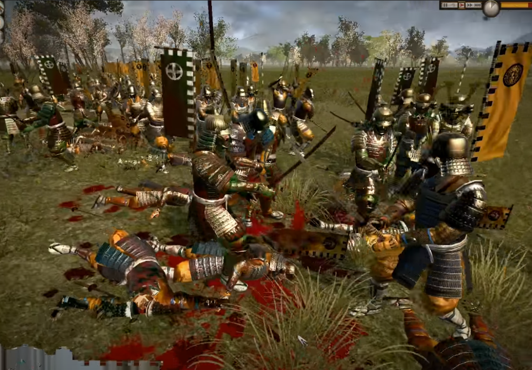 在之前的历史系全面战争中,CA曾经尝试过使用“同步的战斗动画”(Sync Animation)。例如,在《幕府2》中,武士们在对战的时候,时常会二人一组配对,互相较量,他们在交剑、格挡和处决的时候,一方的攻击动画和另一方的受击动画完全匹配,就像经过编排一般。这大大增加了战斗动作的真实感,使玩家仿佛在观看剑戟片一般。