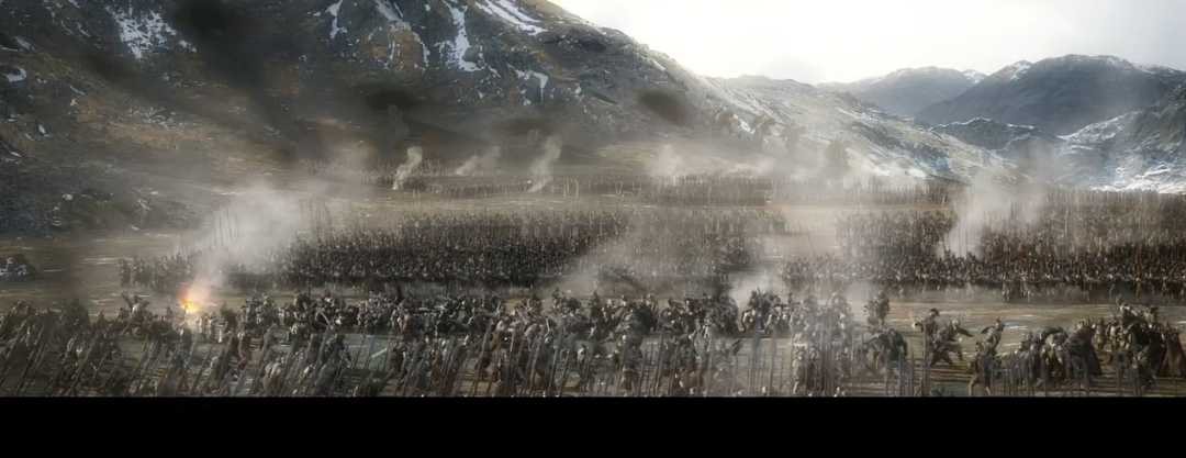 注:由于公映版的五军之战删除了大量战争场面的镜头,因此本文使用的是未剪辑的加长版中的镜头。