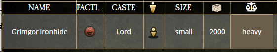 上图是两个步行单体领主的属性,前者是泰瑞昂,质量和一个骑兵相当,后者是格里姆格·铁皮,质量和一只冰霜巨龙差不多。相比其他步行的步兵,他们的质量都相当大。