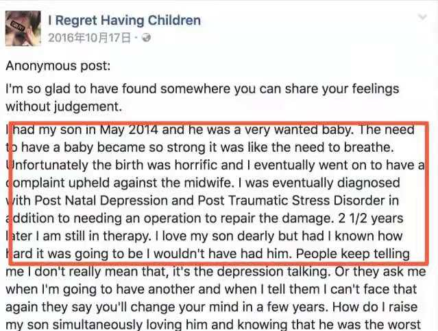 “在我心中孩子曾跟呼吸一样重要。不幸的是,生孩子实在是太可怕了。一直在生产后的半年后我都在接受治疗。”