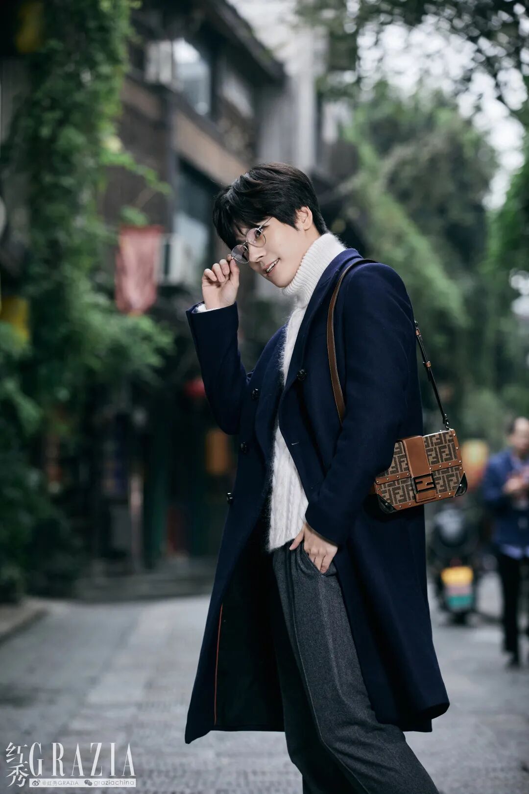 高领羊毛衣/灰色羊绒裤/老花挎包 all from FENDI