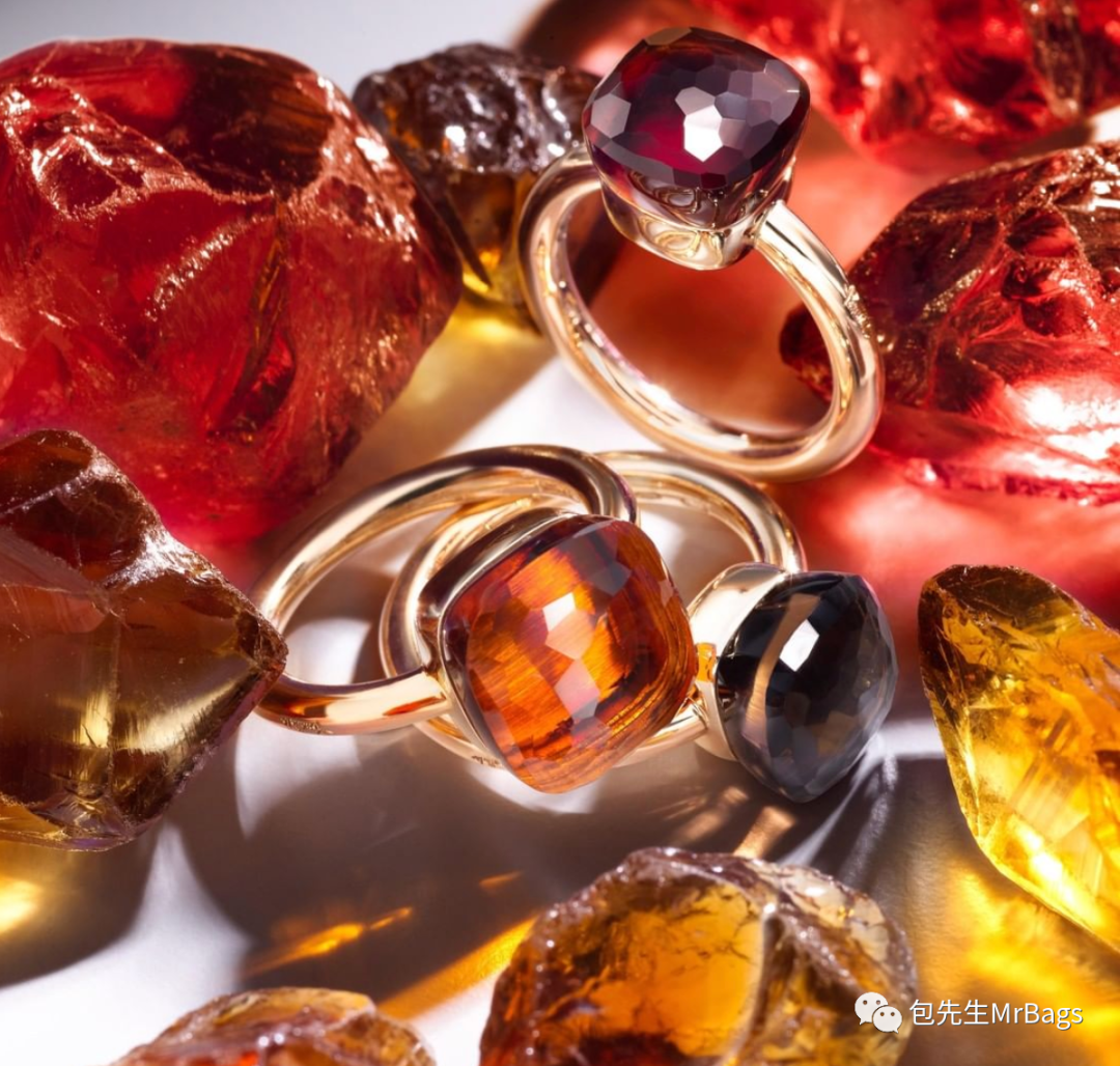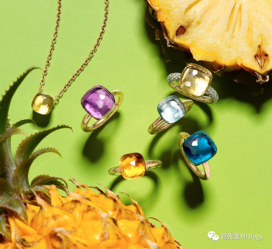 之所以比较喜欢HardWear这个系列,是实在很爱这种硬朗的金属链环式设计。再加上圆球和锁头的点缀,使它完全没有大金链子的俗气感,现代、前卫、很有力量!也正是因为这种存在感很强的金属堆叠,使HardWear系列没有明显的性别限制。所以不管是时髦的潮流男生戴,还是潇洒率性的女生戴,都很合适!除了纯金属或金属镶钻的款式外,在HardWear系列中,还有金属与珍珠的组合。与纯金属材质相比,珍珠的加入,给HardWear增加了一丝温柔与优雅,充满柔中带刚的大气和自信,非常适合有态度的时髦女孩。如果你喜欢大颗、存在感极强的彩色宝石,那Pomellato会是你最好的选择。作为意大利人最爱的珠宝,Pomellato把意大利人的热情和对彩色宝石的热爱,都巧妙地注入到了珠宝设计之中。在Pomellato的珠宝中,最受欢迎的也最经典的设计,当然就是Nudo了!Nudo系列的设计看起来非常简单,好像就是一颗看上去像彩色糖果一样的大宝石。这样特别的设计,辨识度很高,都不需要任何明显的logo,有品位的人基本一眼就能认出来。要知道Nudo系列的每颗宝石,都有57个专利切割刻面!同时,Nudo系列还采用了特殊的无爪式镶嵌。整颗宝石都被高高托起,最大程度地展现出宝石本身通透又纯净的样子。