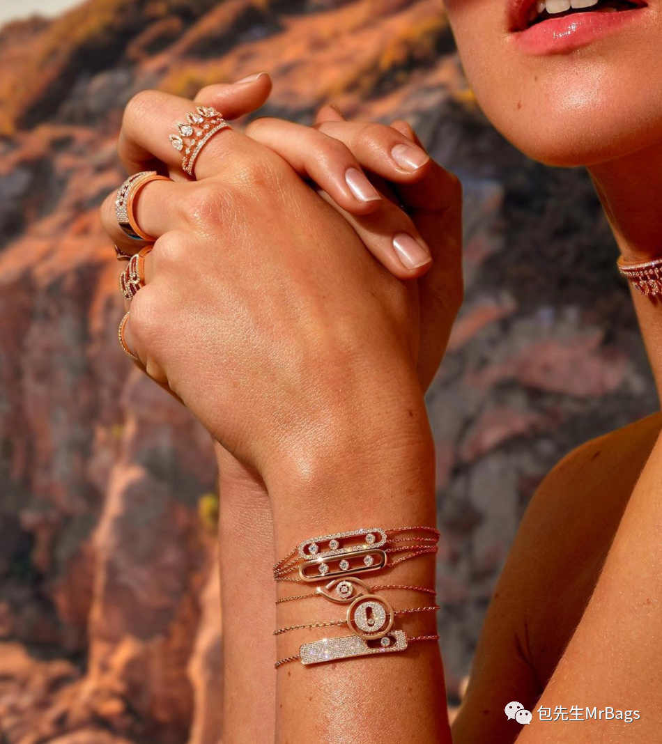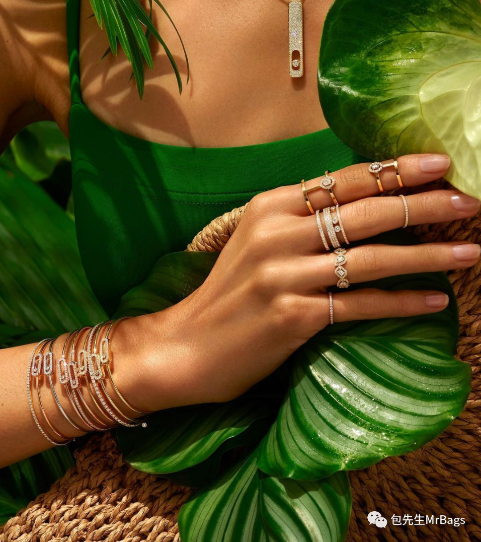 Nudo系列超级适合叠戴,尤其2-3个戒指同时戴在一起,错落着的感觉特别好看。时髦女孩们可以去Pomellato店里好好试一试,这么多颜色的彩色宝石,哪个最适合你!最后一个很低调的珠宝品牌,是我很喜欢,所以已经给大家介绍好几次的品牌。它就是来自法国的Messika!Messika在国内还属于非常小众的品牌,但这个品牌有一个超级标志性的可滑动钻石设计没准你见过!三颗滑动的钻石,代表着“无论过去,今天亦或未来,爱永远都在” ,寓意特别美好。如果大家想要入手,我建议一开始可以从Move系列的手链开始买起。这可是Messika最受欢迎的单品,据说全球每十分钟就会卖出一件!曲别针样式的设计简单、耐看,也比较好搭配。再加上会随着手腕摆动而上下滑动的三颗小钻,特别有魅力!而且这样小巧又简洁的设计,也很容易跟手表和其他手镯混搭。既好搭配、不抢眼,同时还能展现十足的设计心思,并与滑动的钻石产生互动感。再加上K金和钻石的材质组合,使Move系列能完全不怕过时,可以一直戴下去。
