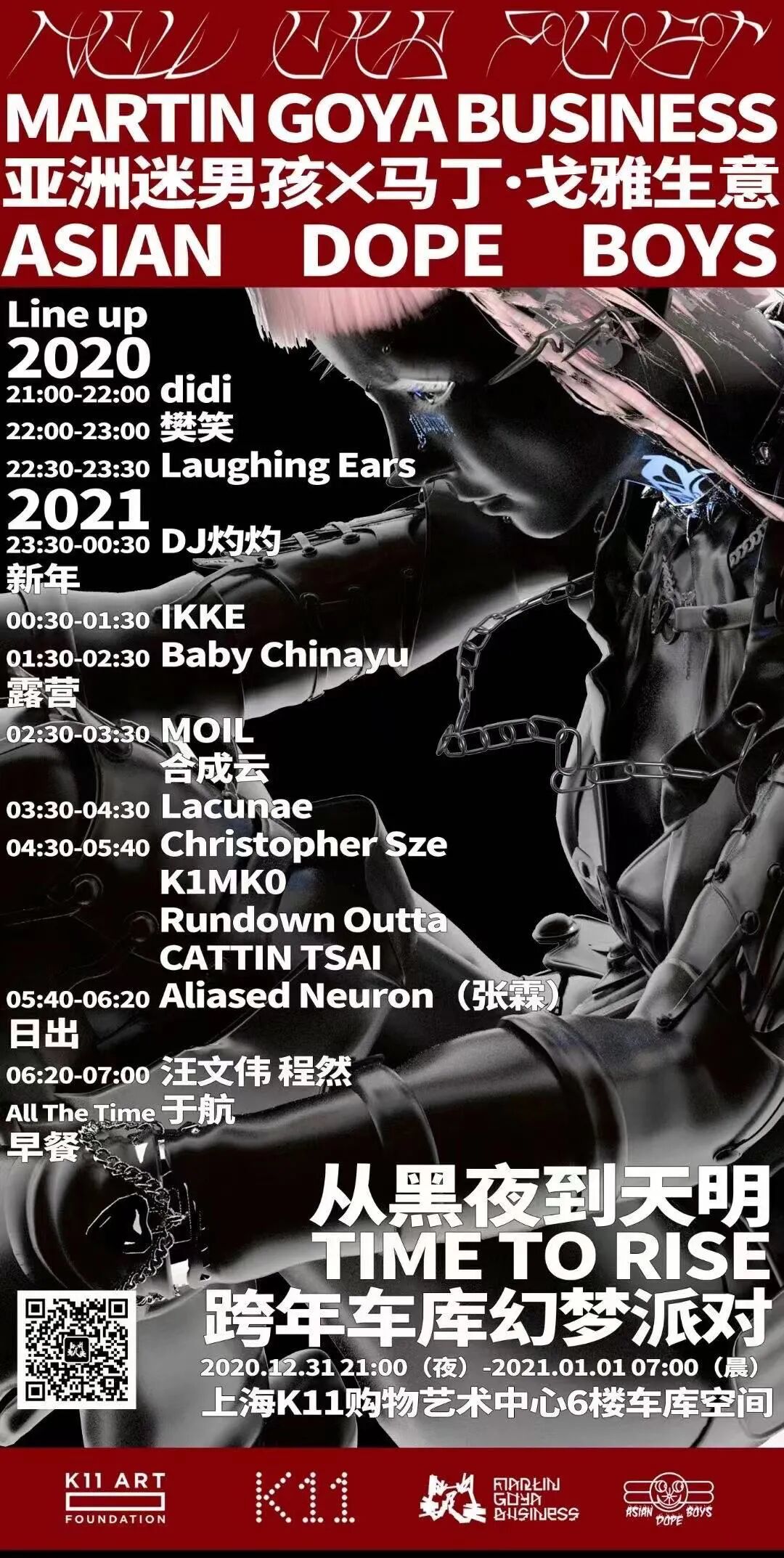 马丁·戈雅生意将以“从黑夜到天明”为题,由艺术家陈天灼所创立的令人瞩目的独立厂牌ASIAN DOPE BOYS联合17位音乐人/艺术家共同呈现长达十小时的现场,与2020说再见,共同迎接新的未知。