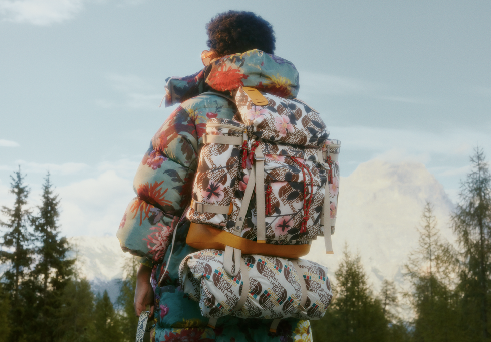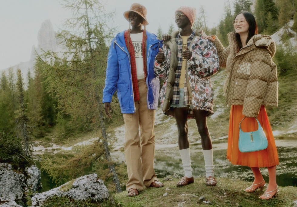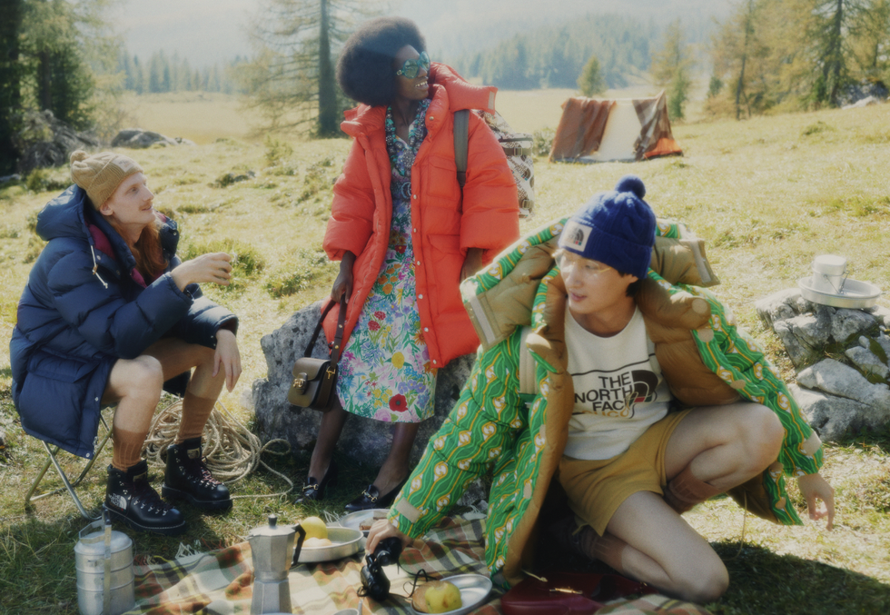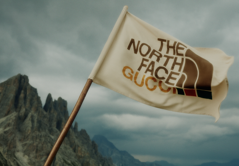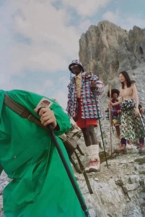 设计总监 Alessandro Michele 设计了一组宣传广告,由 Daniel Shea掌镜,并直接登上阿尔卑斯山拍摄。形象广告洋溢着上个世纪 70 年代的氛围,当时的The North Face还是位于加州伯克利正在崭露锋芒的户外运动用品品牌,而 Credence Clearwater Revival 的经典歌曲“Bad Moon Rising”也成为贯穿整支广告影片的灵魂歌曲,整只形象片都充满复古怀旧感
