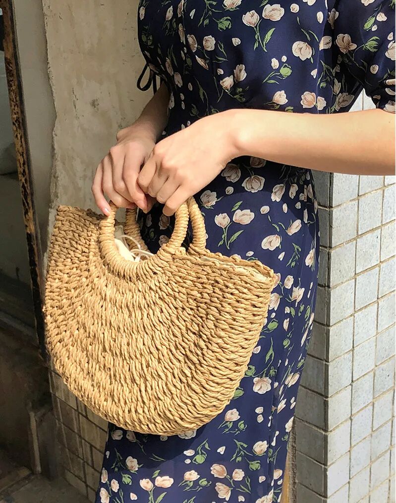 藤编手提包向来受度假旅行党的宠爱。搭配上碎花裙,瞬间溢满芬芳的田园气息。