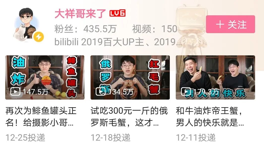 比如b站的「大祥哥来了」,在不到两年的时间里迅速圈粉435.5w,单个视频平均播放量在150w以上,还被评选为2021年度黑马up主。