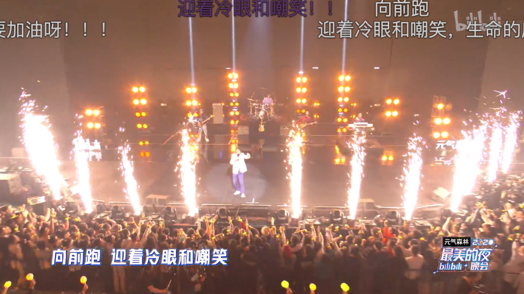 GALA乐队的《追梦赤子心》和《 Young for you》,又充满了激励人心的力量,引发全场大合唱,弹幕变成了许愿墙~