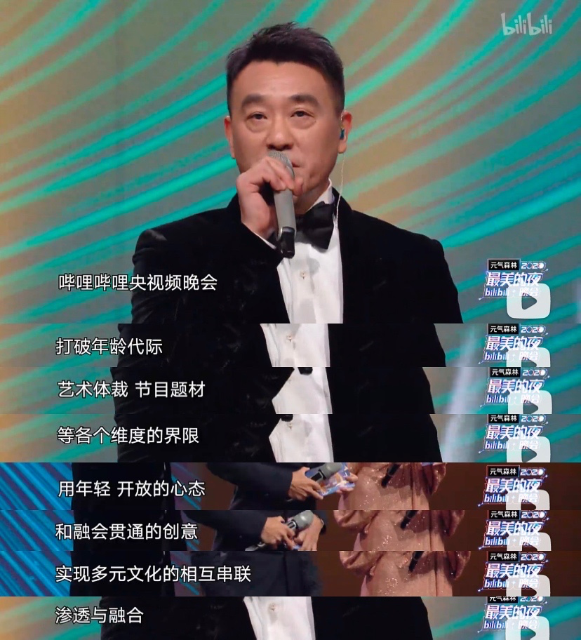 凡尔赛鼻祖撒贝宁搭档陈超、何冰主持,还增设了北京、武汉、香港、台北四个分会场,动漫影视、国风经典、摇滚说唱、流行梗曲高能串联,非常B站了!