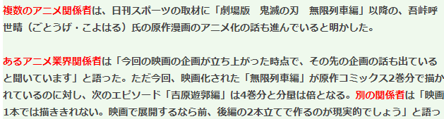 《鬼灭之刃》新作动画策划中下一部电影或分2部曲