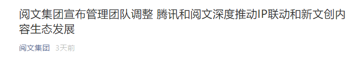 “2020年4月27日,阅文集团宣布管理团队调整,现任联席首席执行官吴文辉先生和梁晓东先生、总裁商学松先生、高级副总裁林庭锋先生等部分高管团队成员荣退,辞任目前管理职务,吴文辉先生将调任非执行董事和董事会副主席,梁晓东先生和其他高管将会担任集团顾问,助力管理团队的平稳过渡,持续支持阅文的战略发展; 同时,董事会委任现任腾讯集团副总裁、腾讯影业首席执行官程武先生出任阅文集团首席执行官和执行董事,腾讯平台与内容事业群副总裁侯晓楠先生出任阅文集团总裁和执行董事,推动阅文深度联动腾讯和行业伙伴,迈向全新的发展阶段。”