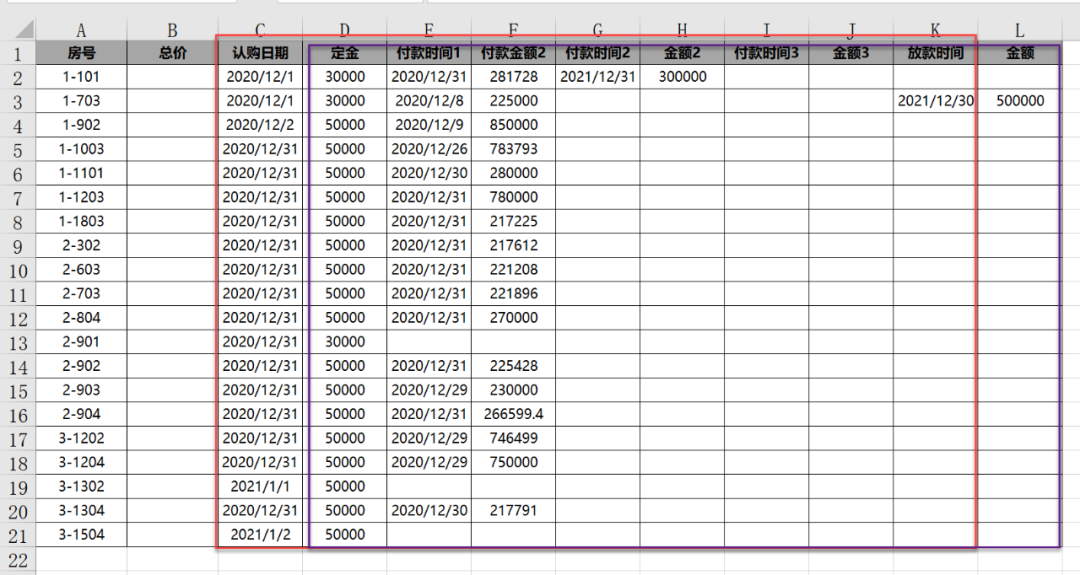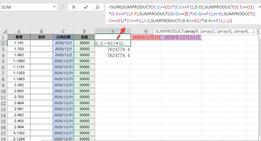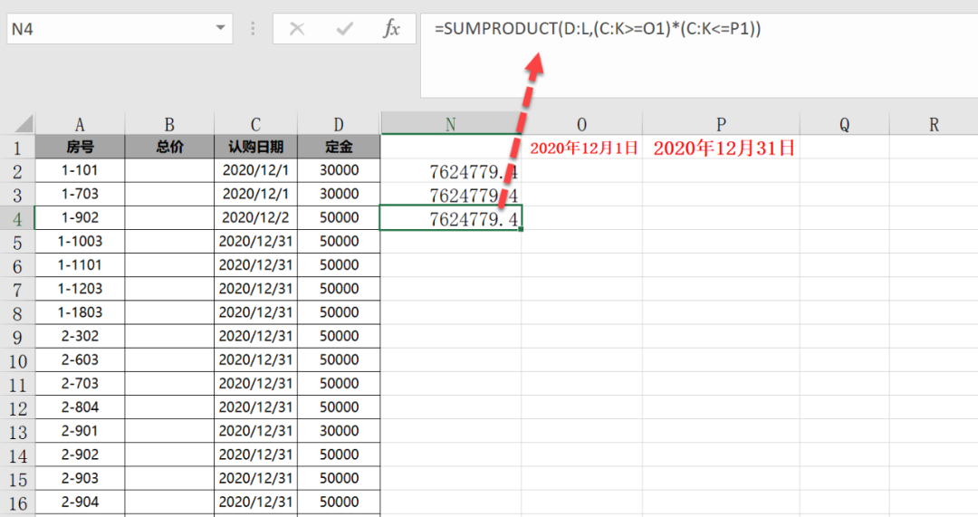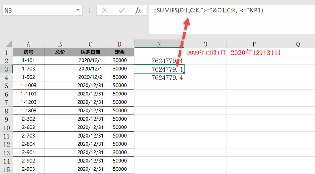 学员的问题,一列日期,一列金额,有很多列。现在要得到2020-12-1到2020-12-31的总金额。