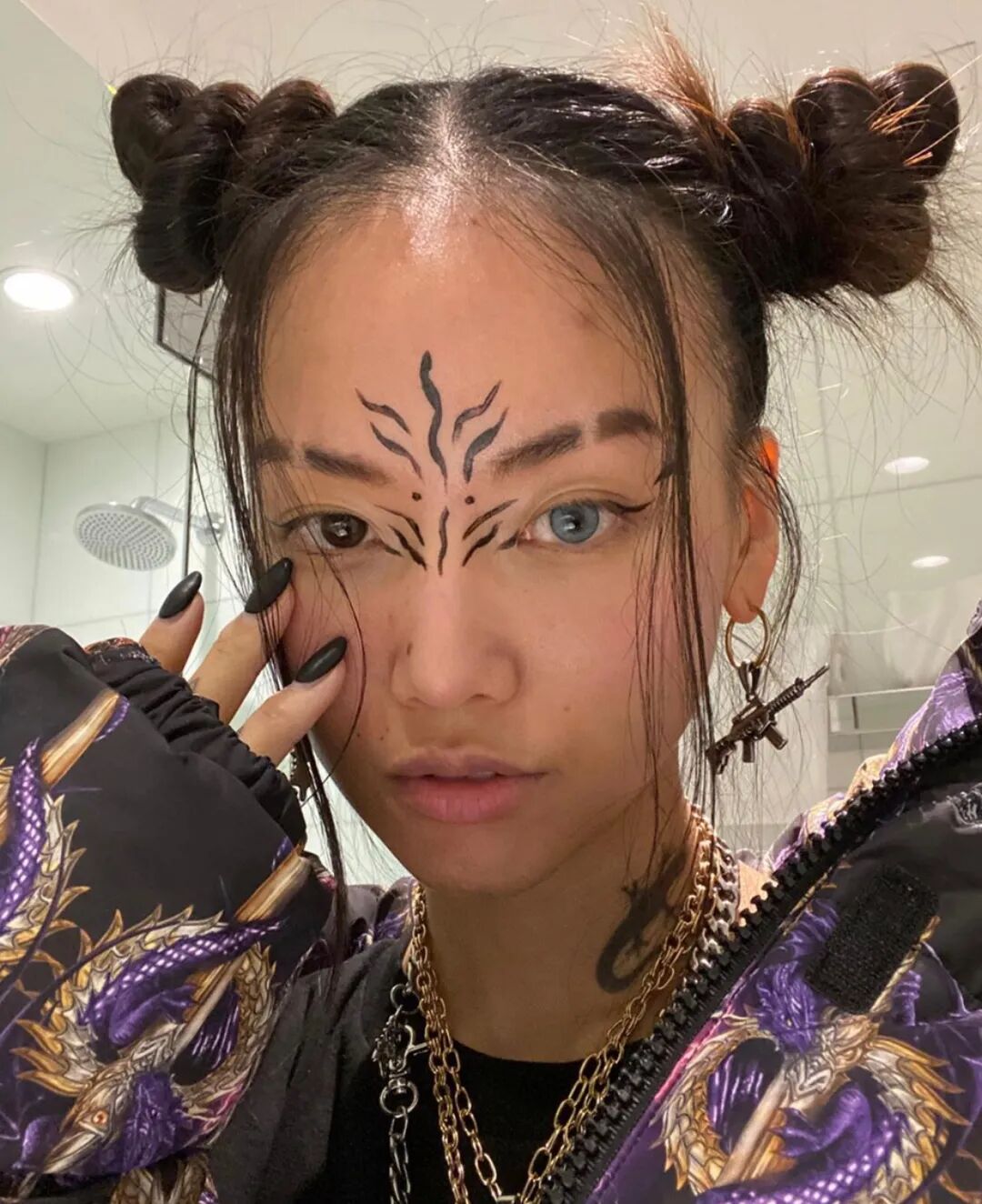 不仅是「左耳 2 个,右耳 3 个」的耳洞,小鬼还去穿刺了眉钉。染发、美甲、耳饰齐上阵,这不就是一枚敢做敢玩的潮人酷盖。