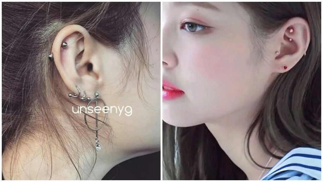 她的耳洞「左耳4个,右耳5个」,而且打在小耳朵和 Rook 的位置,德善作为 Jennie 的粉丝,看着她的 Rook 很上头,想打,但怕痛......