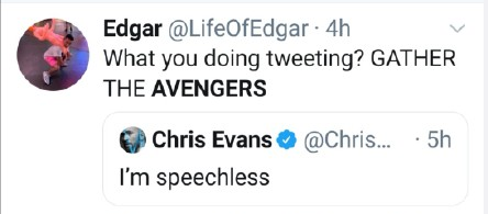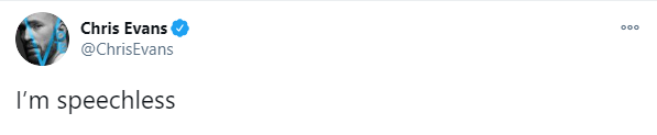 “美队”Chris Evans在推特上发文:I'm speechless(无语)。