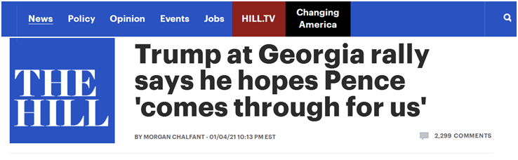 在乔治亚为参议院民主党争夺席位时,他喊话:“我必须要说:希望伟大的副总统——彭斯帮帮我们,推翻拜登!彭斯可以做到,他真的棒棒哒!”在推特上再三催彭斯,让他赶紧出门替他讨伐,说彭斯有这个能力:确定了自己三无产品的地位,彭斯低调再低调,就是不信谣,不传谣。