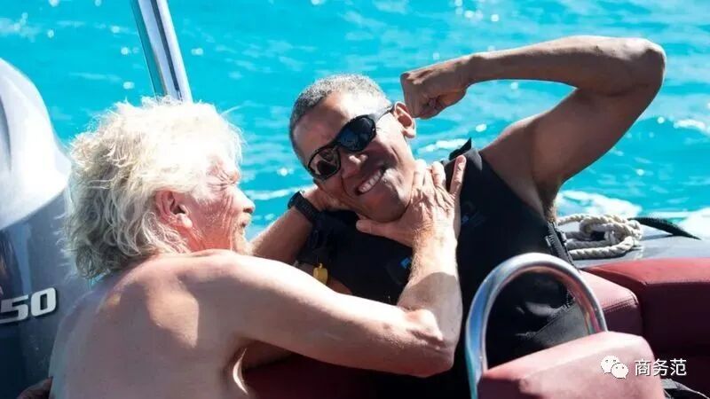 奥巴马之前卸任总统后,还带着夫人一起到他的岛上度假。看得出来很享受这里的阳光,布兰森还闹着玩地握着奥巴马的脖子。